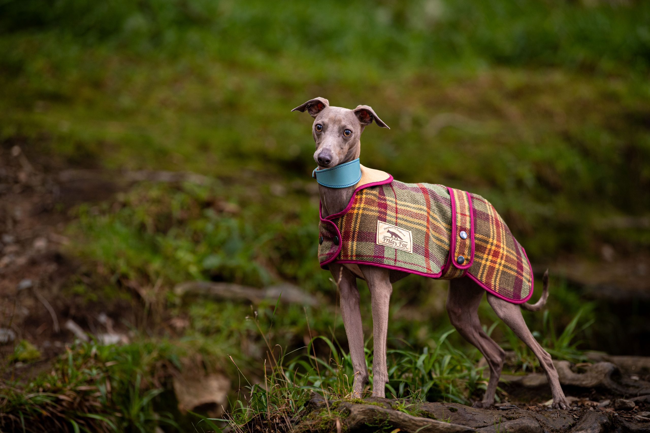 Cut to fit your Italian Greyhound perfectly, with a nicely curved back. Adjustable at the belt and at the front.